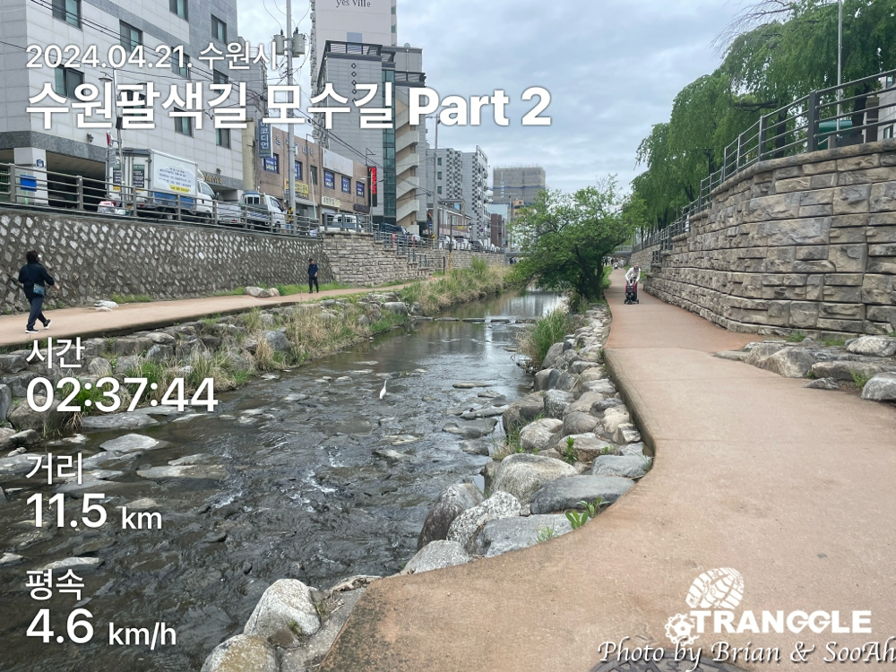 수원팔색길을 열심히 걷고 있는데, 이번에는 그 첫번째 길로 지정된 모수길입니다. 수원시 경계를 도는 수원둘레길을 제외하고는 가장 긴 길이의 산책길인데, 제가 사는 집 바로 옆으로 모수길이 지나가서 일단 거기서부터 수원천을 따라 남쪽으로 가는 방향으로 진행했습니다.